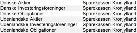 Sparekassen arbejder sammen med flere investeringsforeninger. Det gør vi for at kunne give vores kunder et bredt og uvildigt udvalg af værdipapirer at investere i.